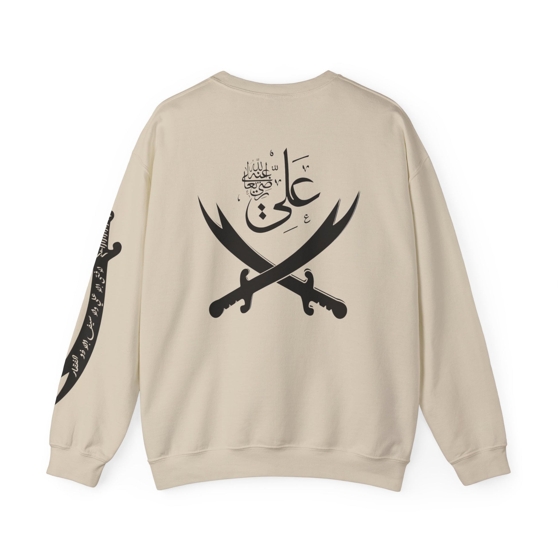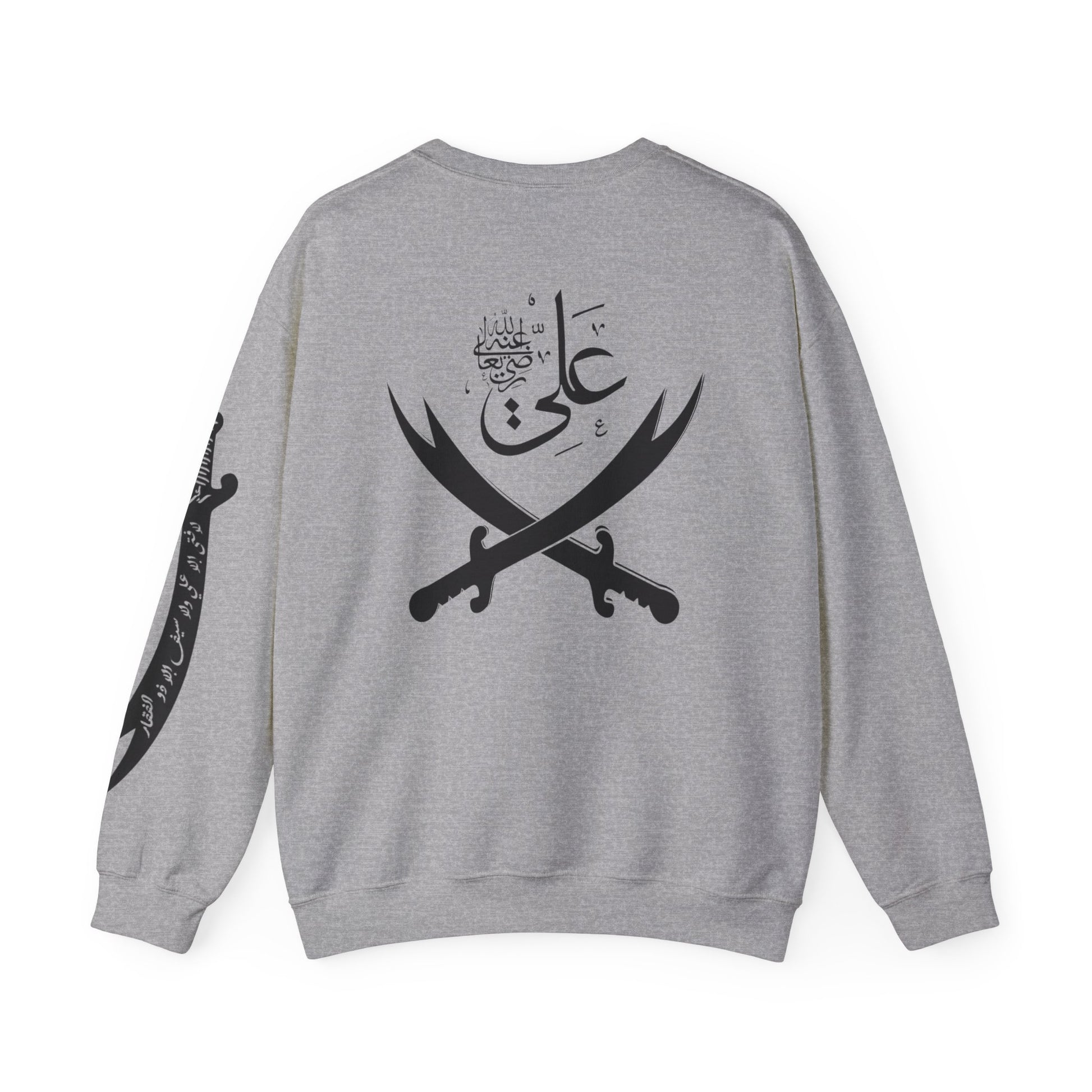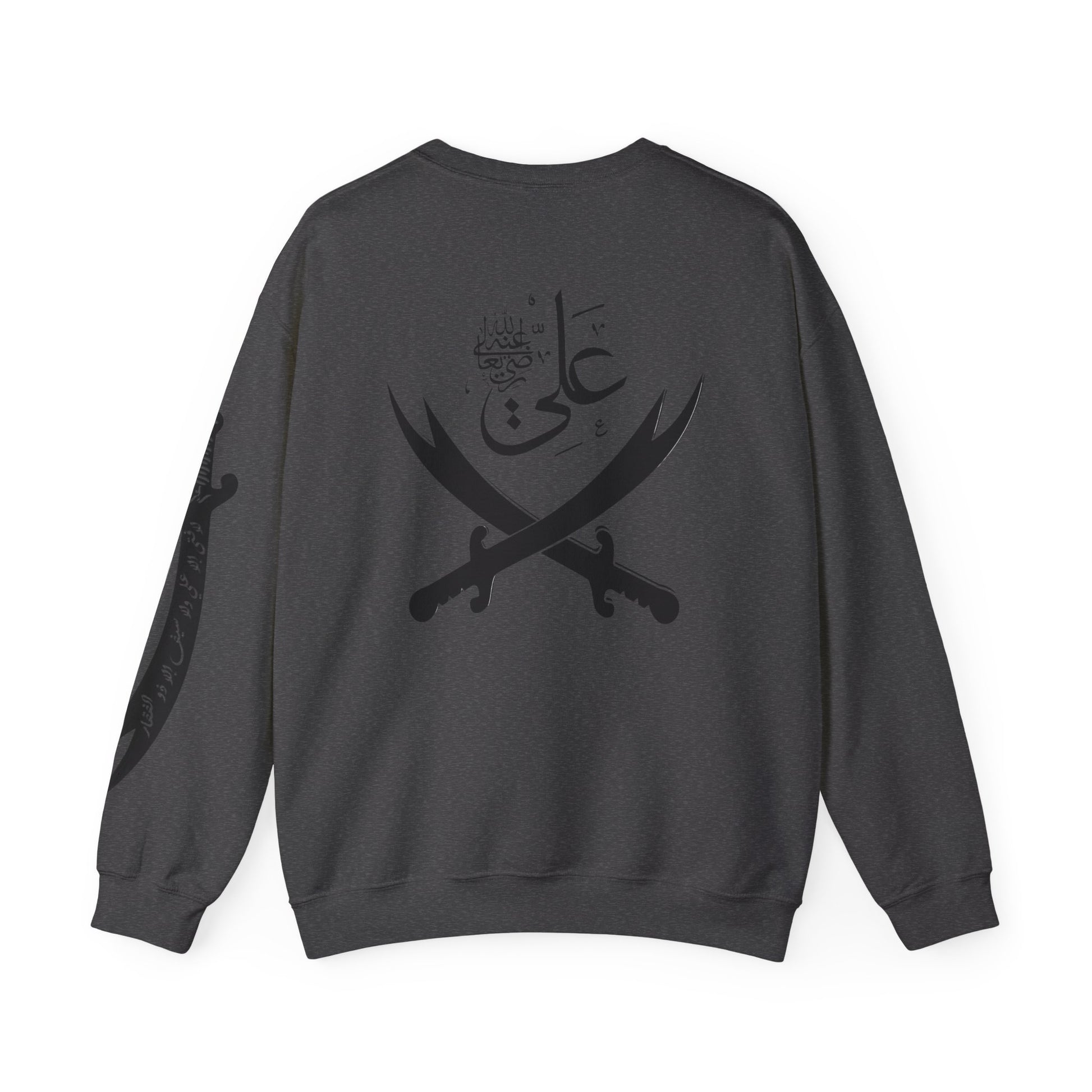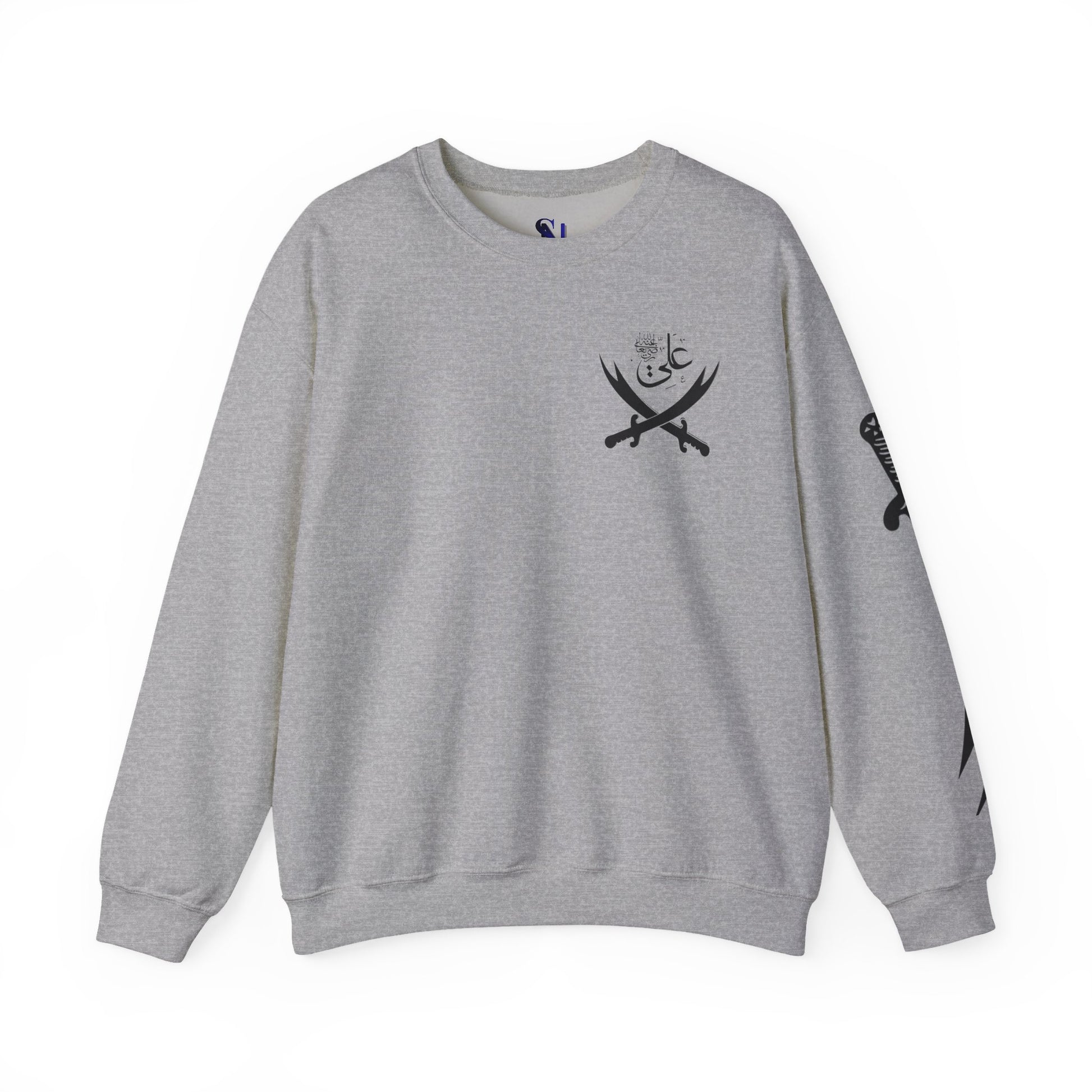 Crewneck Sweatshirt — Arabic Calligraphy with Crossed Swords Design