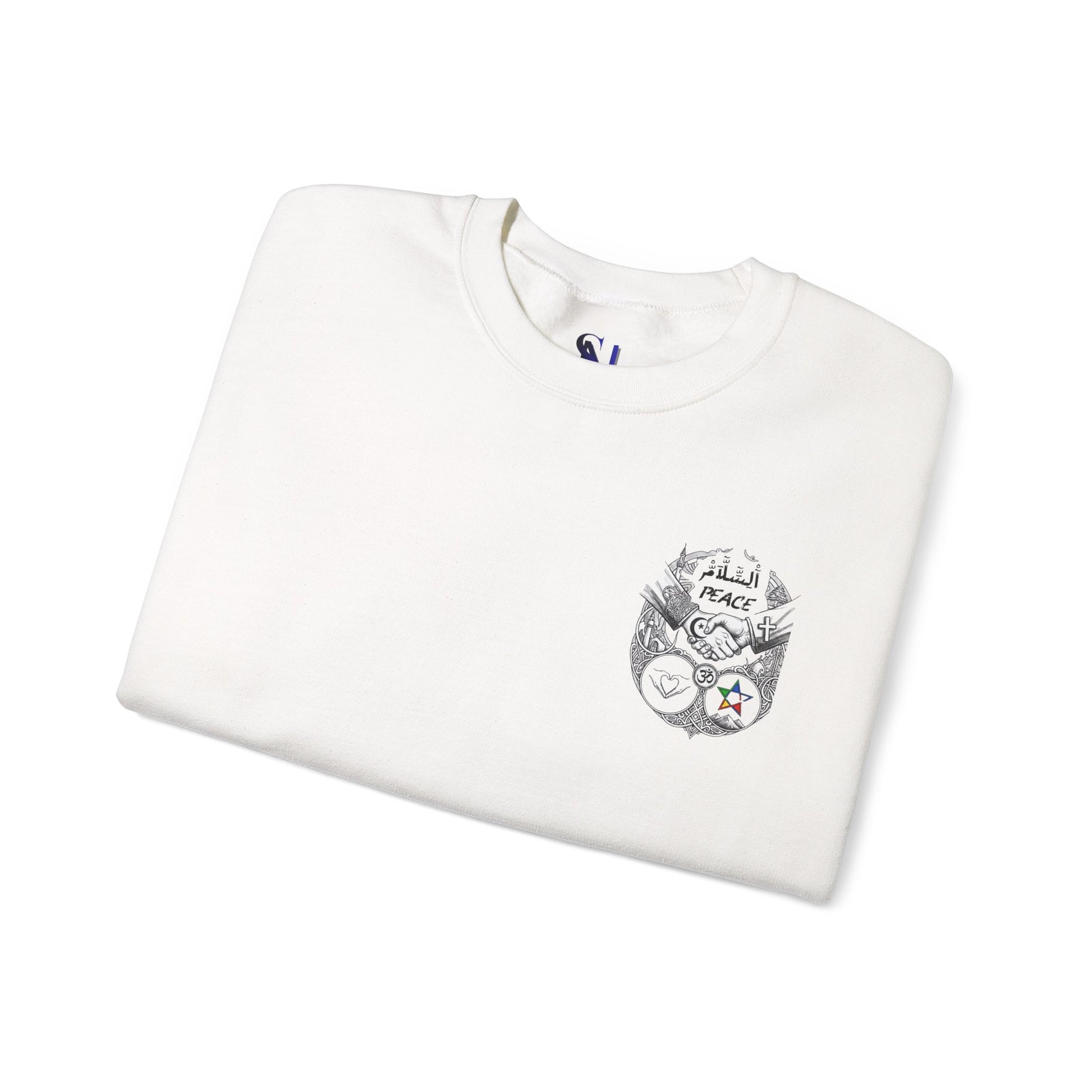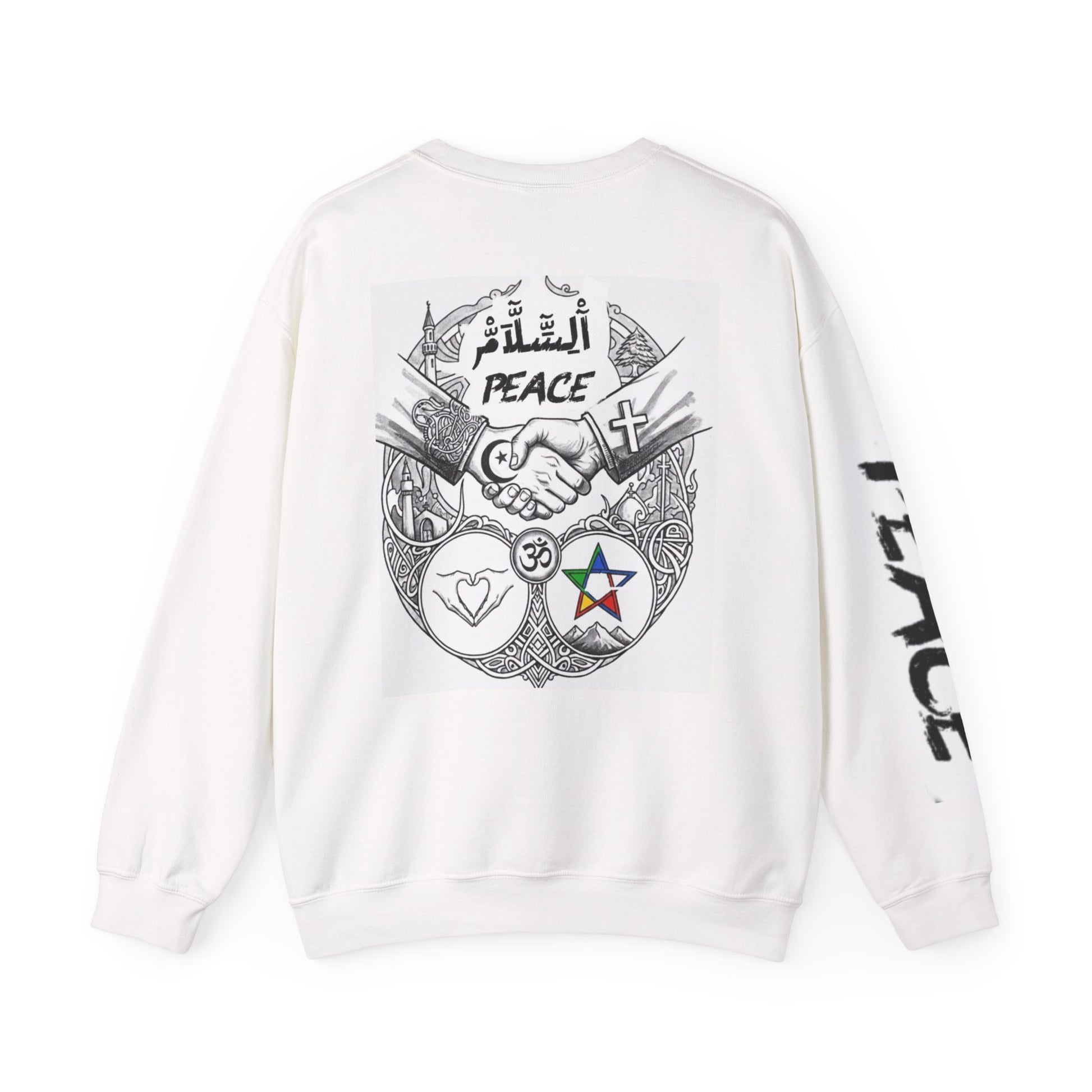 Peace Symbols Crewneck Sweatshirt — Interfaith Handshake Graphic
